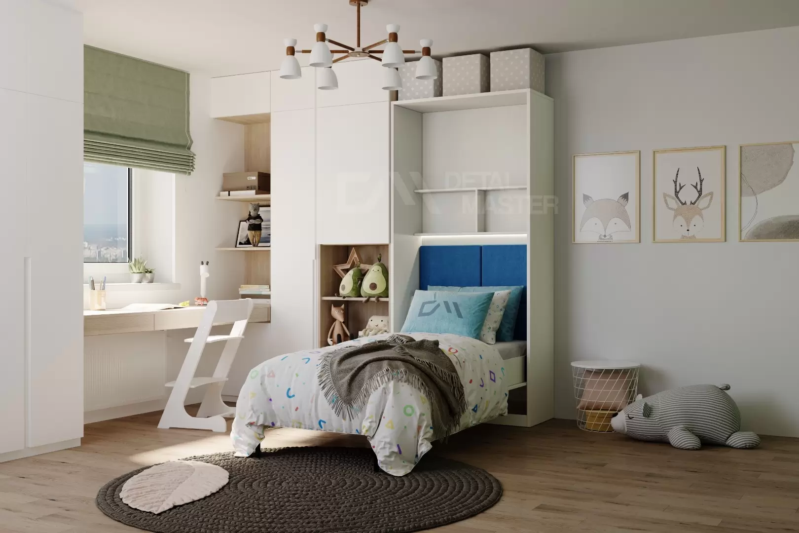 Детская шкаф-кровать "Flip Bed Start" работает на механизме раскладывания собственной разработки "Start". Кровать раскладывается легким движением руки, превращаясь в полноценное спальное место. Просто потяните ее за ручки, расположенные на фасаде и выставите ножки-опоры.