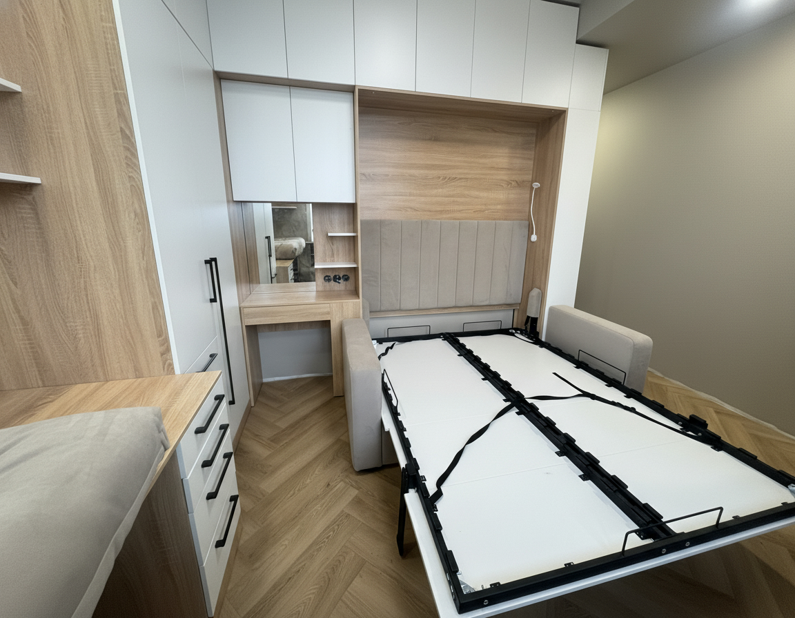 4. Это мебель трансформер, которая может использоваться как кровать или шкаф одновременно, экономя тем самым пространство.